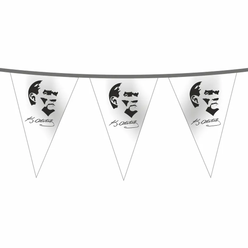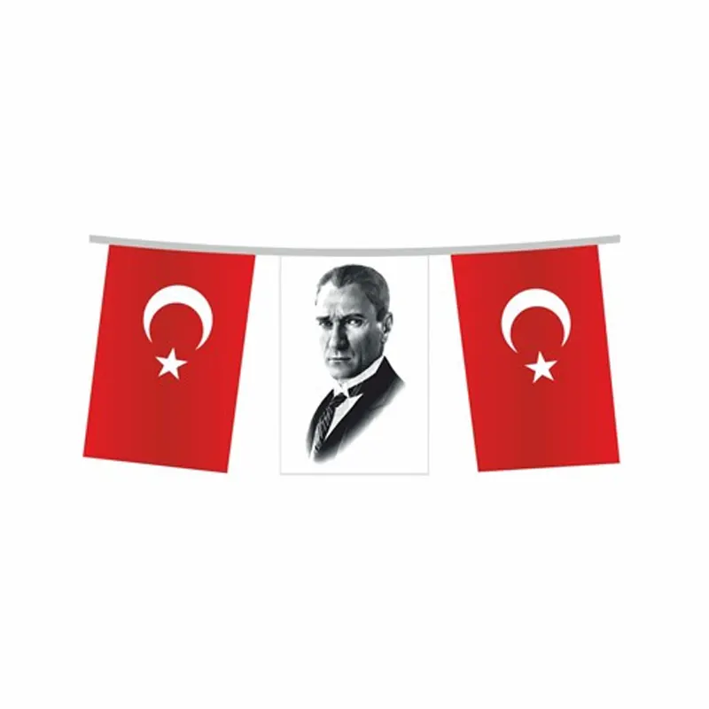 - Atatürk Baskılı İpe Dizili Bayraklar talebe göre Türk Bayrağı veya Özel logolu bayraklarla kombin edilebilir.