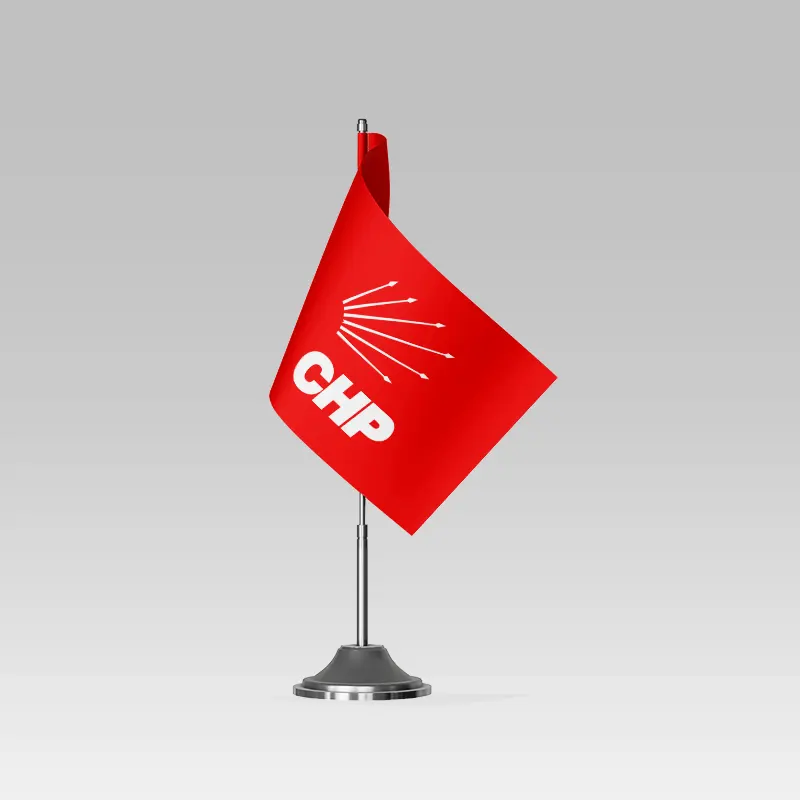 CHP Masa Bayrağı, partinin özel logo tasarımını ve sembollerini taşıyan, çift kat saten kumaşlardan üretilen ve genellikle masa veya kürsü üzerinde kullanılan küçük boyutlu portatif bayraklardır. Standart masa bayrak direklerine, L tipi veya T tipi masa bayrak direklerine takılacak şekilde tasarlanabilir. CHP Masa Bayrağı genellikle ofis masaları, toplantı masaları veya resmi kurum masaları üzerine konularak kullanılır. CHP’nin logosu, rengi ve diğer tanımlayıcı unsurları, CHP Masa Bayrağı üzerine özenle basılır.