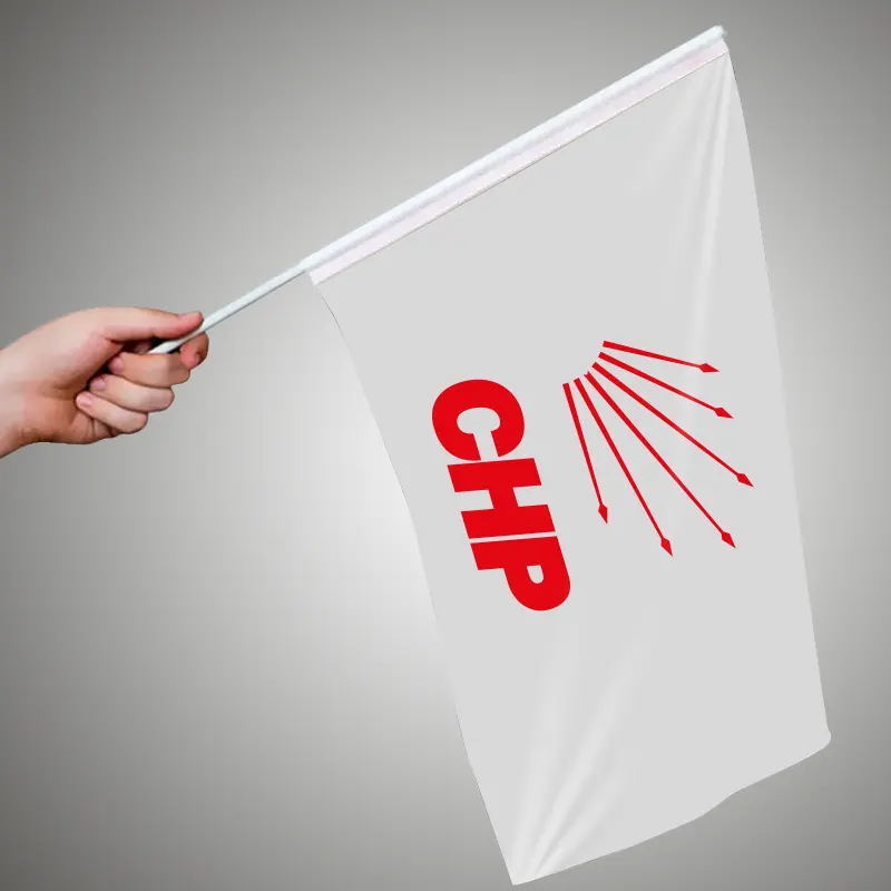 - Bayrak üzerinde CHP logosu, renkleri veya parti liderine ait bir fotoğraf baskısı yer alabilir.