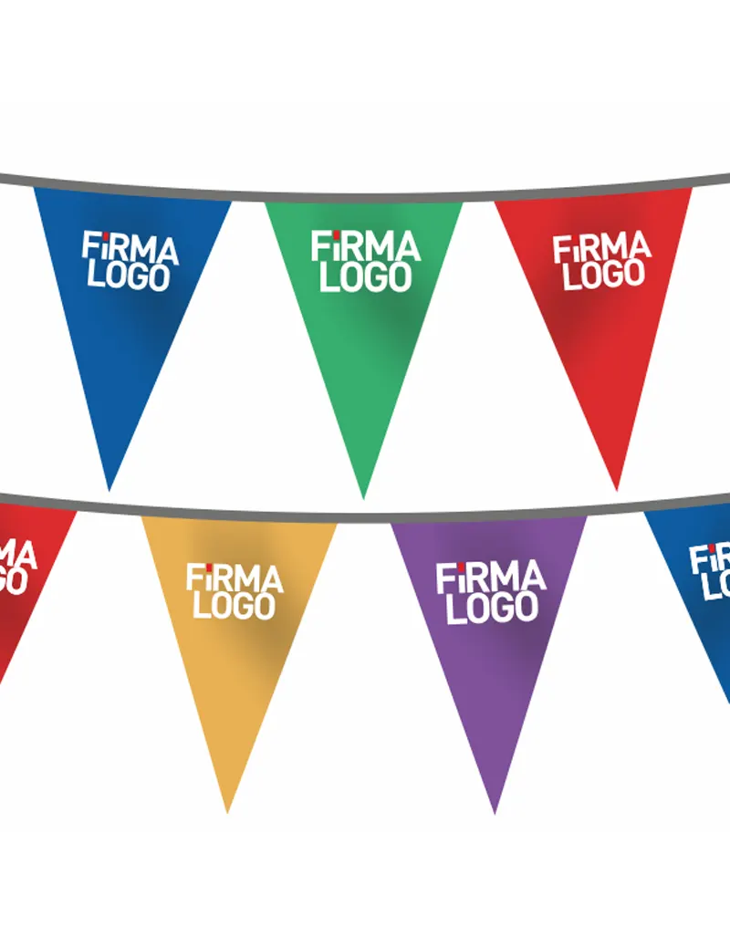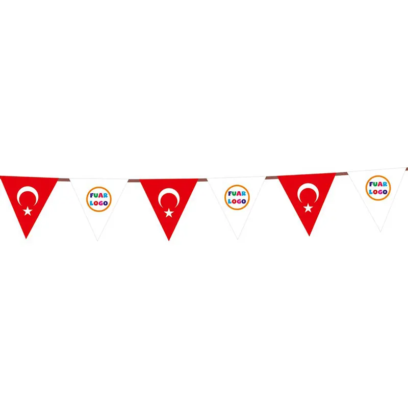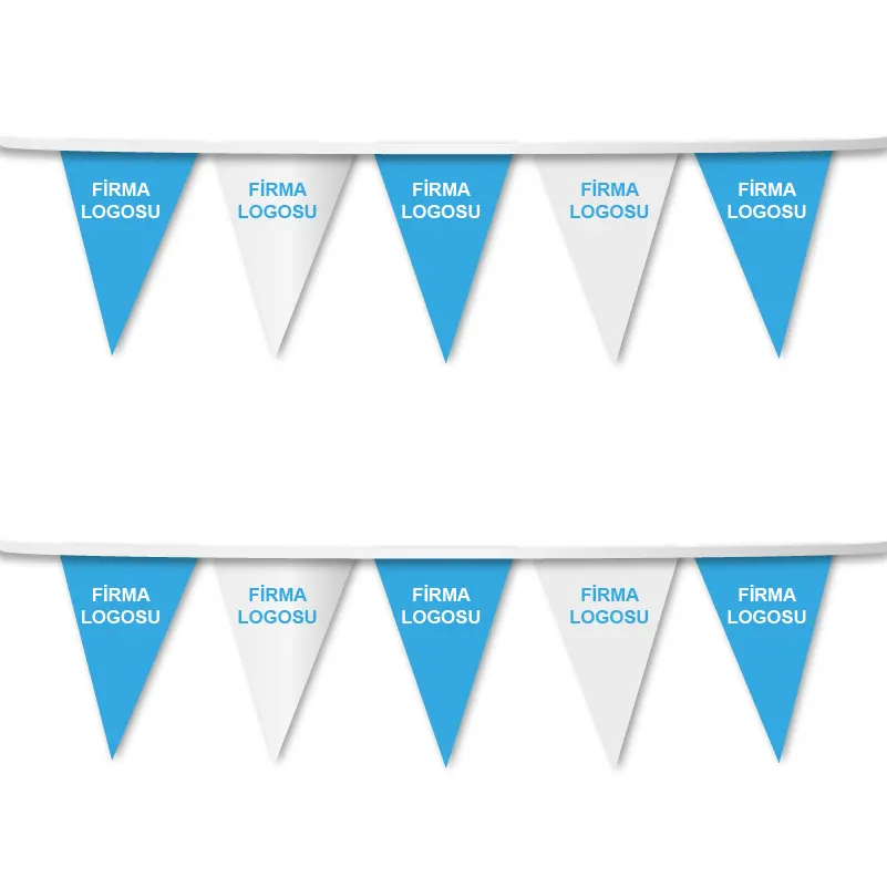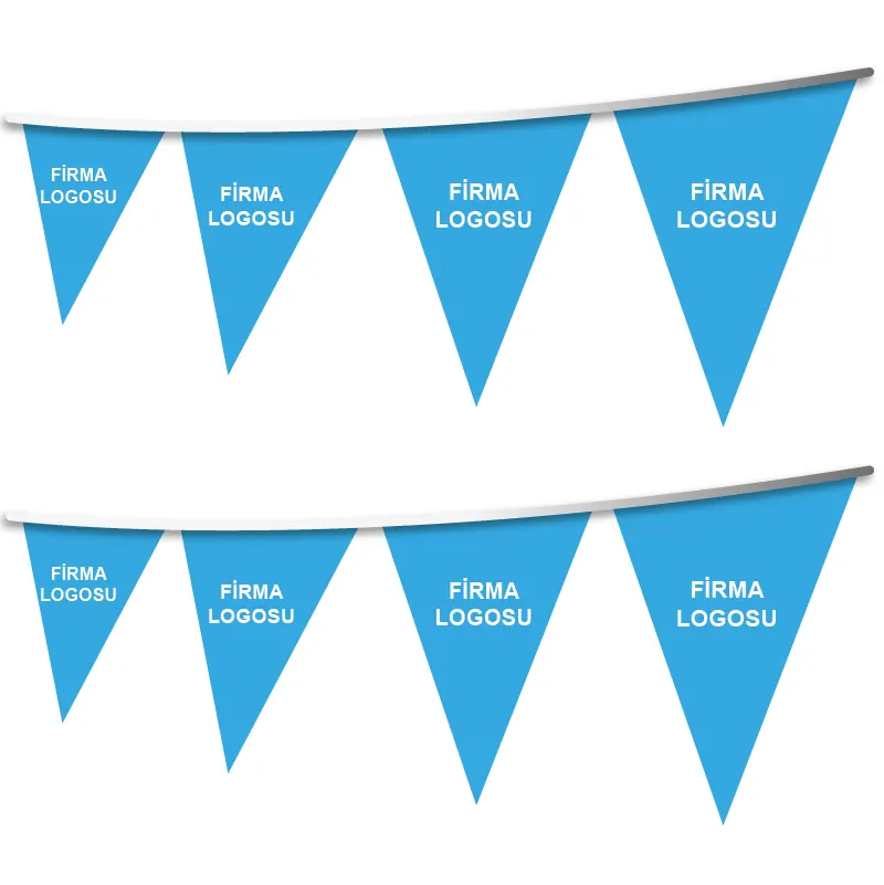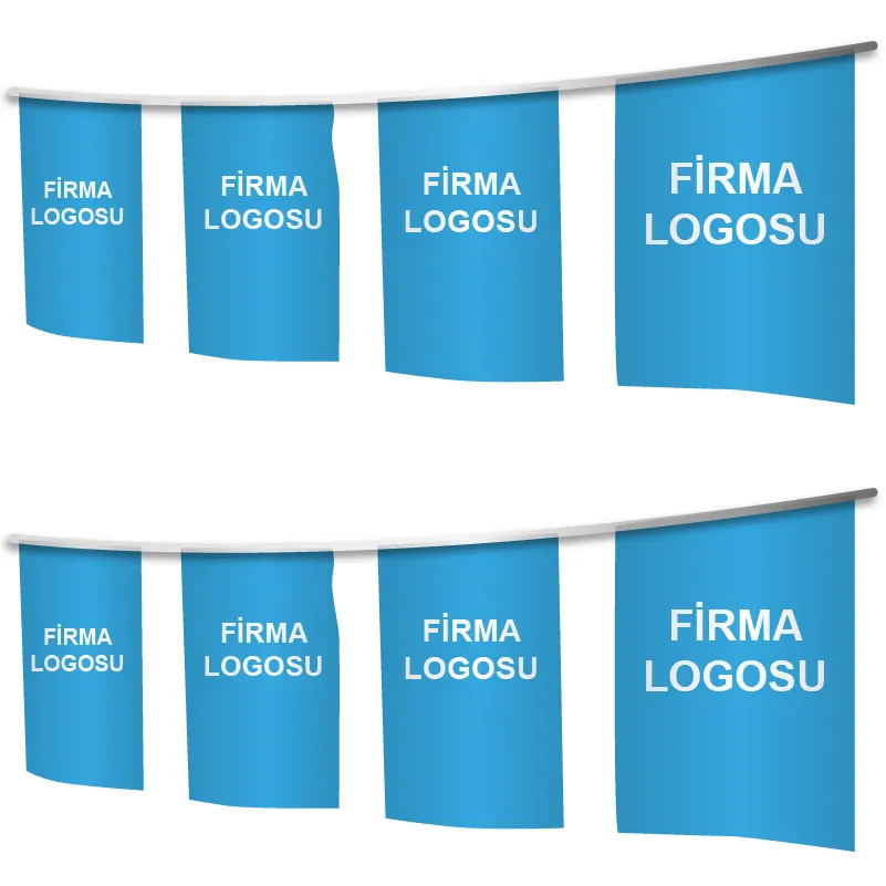 Firma logolu İpe Dizili Bayrak, bir kurumun veya işletmenin kimliğini temsil eden, markaların veya işletmelerin logolorı ve renkleri kullanılarak tasarlanan küçük boyutlu üçgen veya dörtgen şekillerindeki süsleme bayraklarıdır. Hem iç hem de dış mekânda kullanılan Firma Logolu İpe Dizili Bayraklar ihtiyaçlara yönelik olarak yüksek kalitede üretilir ve özelleştirilebilir.