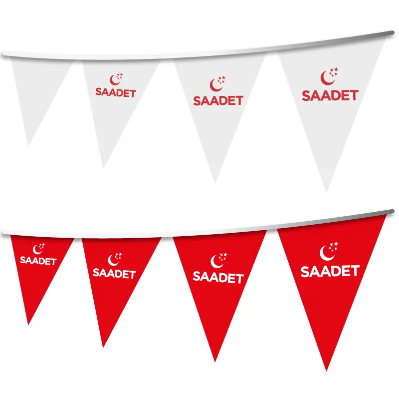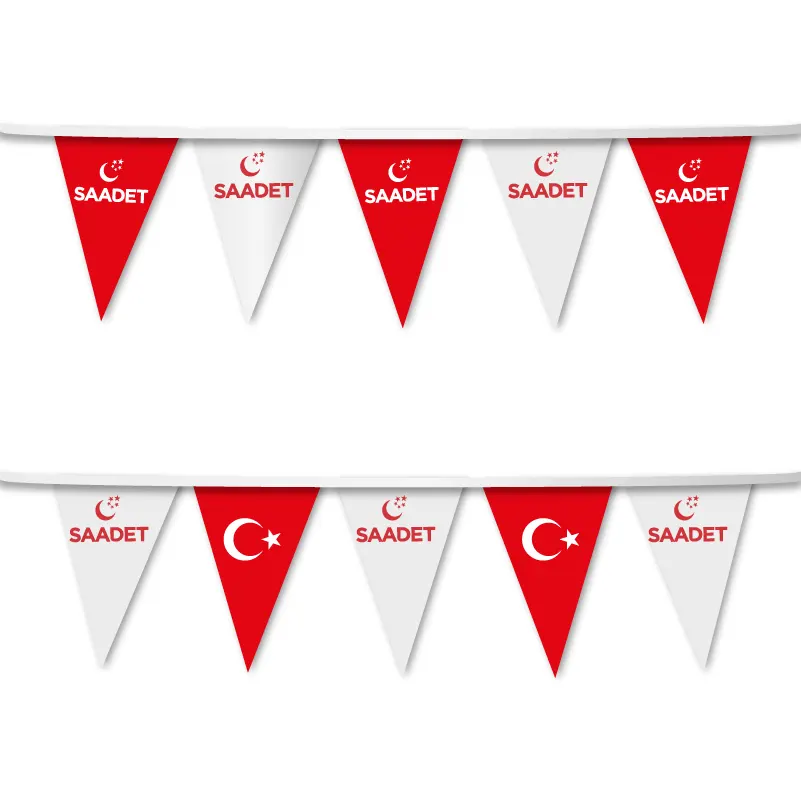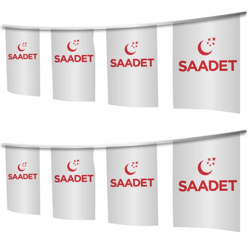 - Saadet Partisi İpe Dizili Bayrak üçgen veya dörtgen şekillerinde üretilebilir.
